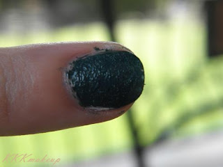 Na początek malujemy paznokieć wybranym lakierem (do tego chyba nie potrzebujecie zdjęcia :)) nie przykładamy się do tego zbytnio, malujemy w różne strony. Następnie, gdy lakier zgęstnieje, podeschnie (nie może całkiem wyschnąć!) pędzelkiem 'rozwalamy' ten lakier lub po prostu 'dziabiemy', żeby ten lakier nie był równo pomalowany: