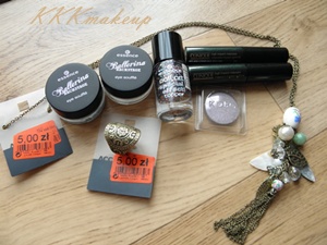 Wczoraj, pierwszy raz(!) odwiedziłam drogerię natura. Moim głównym celem bbyło kupienie cieni Kobo golden rose i lavender blush. Tego drugiego nie było także wzięłam tylko golden rose. Jednak przy płaceniu, okazało się, że wzięłam tester. Pobiegłam wymienić, a tam kolejny tester!. Czyli ostatnie dwa cienie Golden Rose to testery. Super... Ale oprócz tego wzięłam co chciałam, a potem jeszcze w rossmanie była wyprzedaż biżuterii i kupiłam sobie naszyjnik i pierścionek, za pięć złotych sztuka! Wymieniłam sobie również dwa tusze w sephorze :) Także zakupy jak najbardziej udane! Na zdjęciu reszta zakupów, o numerki można pytać w komentarzu ;)