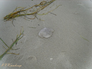 Martwe meduzy na plaży. Leżało ich tam pełno, a ja bałam się wejść do wody ;)