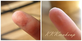 Zdjęcie po prawej najlepiej oddaje kolor. Trwałość nie jest powalająca, w ciągu dnia wymaga poprawek, ponieważ znika z twarzy. Róż na skórze daje nam delikatny efekt, także jest idealny do szybkich, dziennych, neutralnych makijaży.